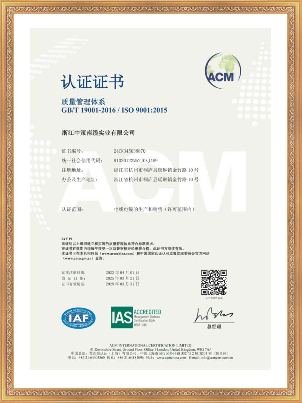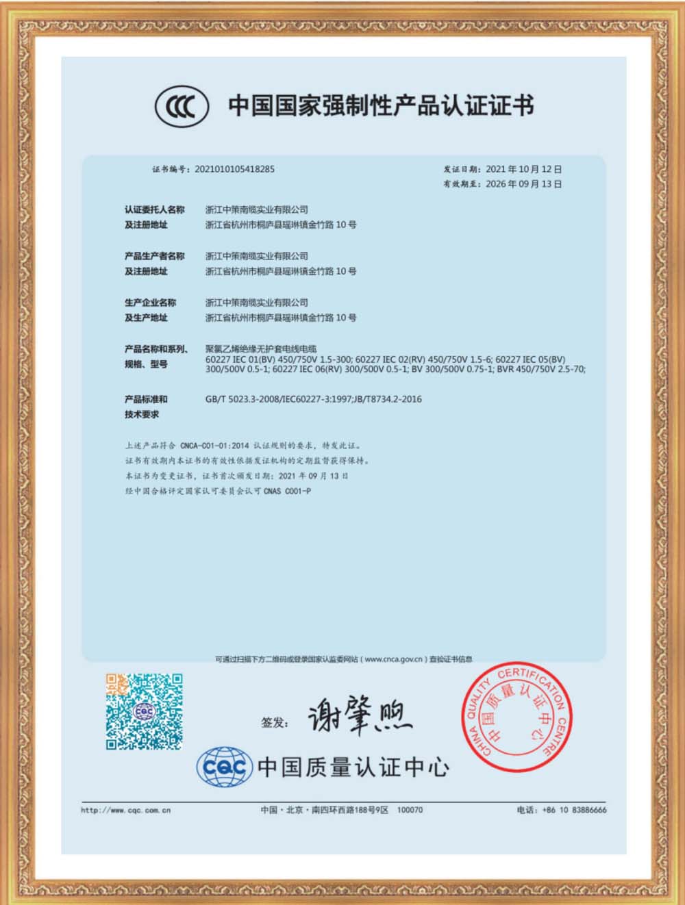 浙江中策南缆实业有限公司是一家集研发、制造和销售为一体的专业电线电缆企业。公司位于华夏旅游第一镇一一杭州市桐庐县瑶琳镇,公司引进先进的电线电缆制造技术、生产设备以及检测设备,专业生产电力电缆、家装线缆、控制线缆、特种电缆、阳燃电缆、耐火电缆,低烟无卤型电缆等几十种系列上干种规格型号产品。浙江中策南缆实业有限公司追求产品高质量,服务高品质,公司一贯坚持选用国内外优质的原材料,执行严格的质量控制体系,从源头上保证公司产品的质量。浙江中策南缆实业有限公司的诚信、实力和产品质量获得业界的认可。欢迎各界朋友莅临参观、指导和业务治谈。